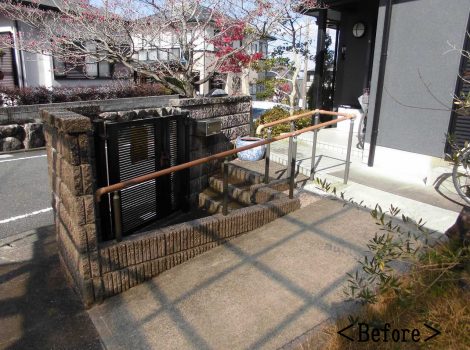 ご同居されているお父様の為のスロープを別に造り直し、軽自動車1台分の駐車スペースを新設するようなご提案となりました。